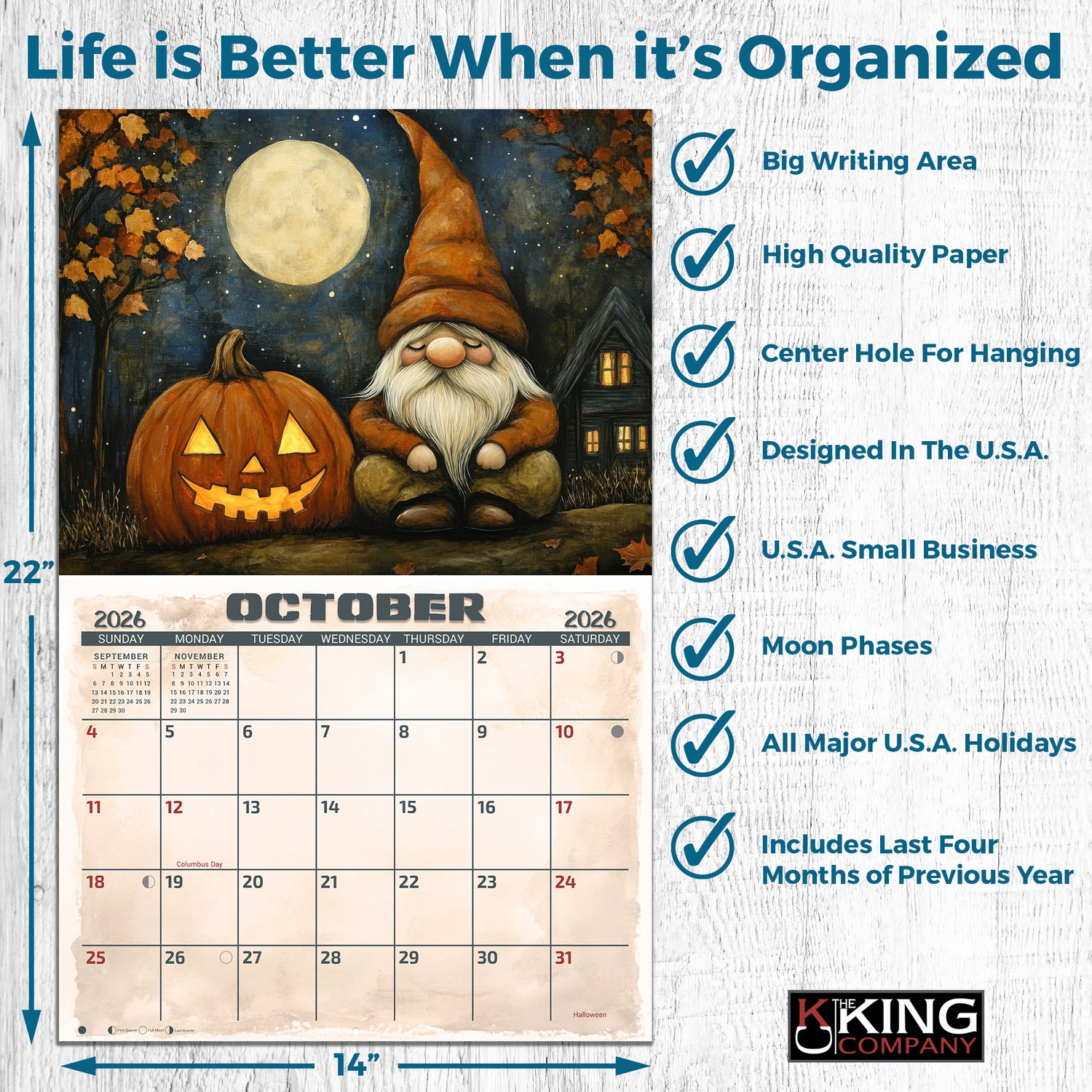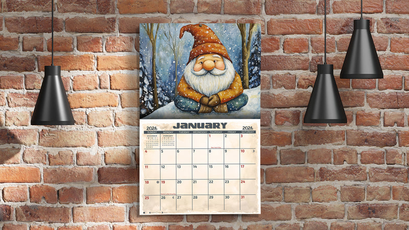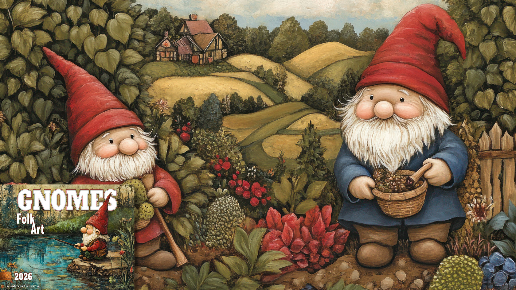 Bring a touch of whimsical charm and old-world magic into your home with the 2026 Folk Art Gnomes Wall Calendar!Each month features a unique, handcrafted illustration of delightful gnomes engaged in various seasonal activities, all rendered in a cozy, rustic folk art style.