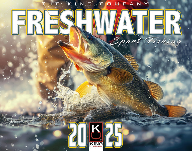 Freshwater fishing is a cherished pastime that beckons anglers to the serene shores of lakes, rivers, and streams, where the bounty of nature awaits. Whether casting from the tranquil banks of a meandering river or drifting across the glassy surface of a secluded lake, freshwater fishing offers a respite from the hustle and bustle of everyday life. From the humble bluegill to the mighty muskellunge, these waters teem with a diverse array of fish species, each presenting its own unique challenge and allure to anglers. With rod in hand and bait or lure at the ready, anglers immerse themselves in the rhythms of nature, attuned to the subtle cues that signal the presence of their quarry. Every tug on the line, every splash of a leaping fish, ignites a sense of excitement and anticipation, fueling the angler's determination to land their prize. Beyond the thrill of the catch, freshwater fishing fosters a deep connection to the natural world, offering moments of tranquility and reflection as anglers become part of the vibrant tapestry of life that thrives beneath the surface of these pristine waters. All of the incredible images in this calendar were created using a combination of AI and digital artwork by The King Company.